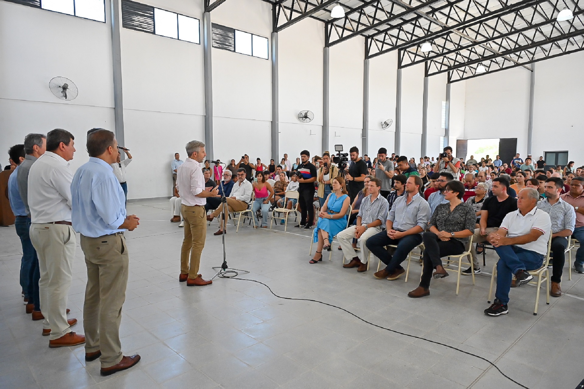 El acto se llevó a cabo este miércoles en el Salón de Usos Múltiples (SUM) de la Escuela Secundaria N°15 Domingo French. Durante su discurso, el gobernador felicitó a las familias adjudicatarias y recordó que la obra comenzó hace dos años con la participación de los gobiernos nacional, provincial y municipal.