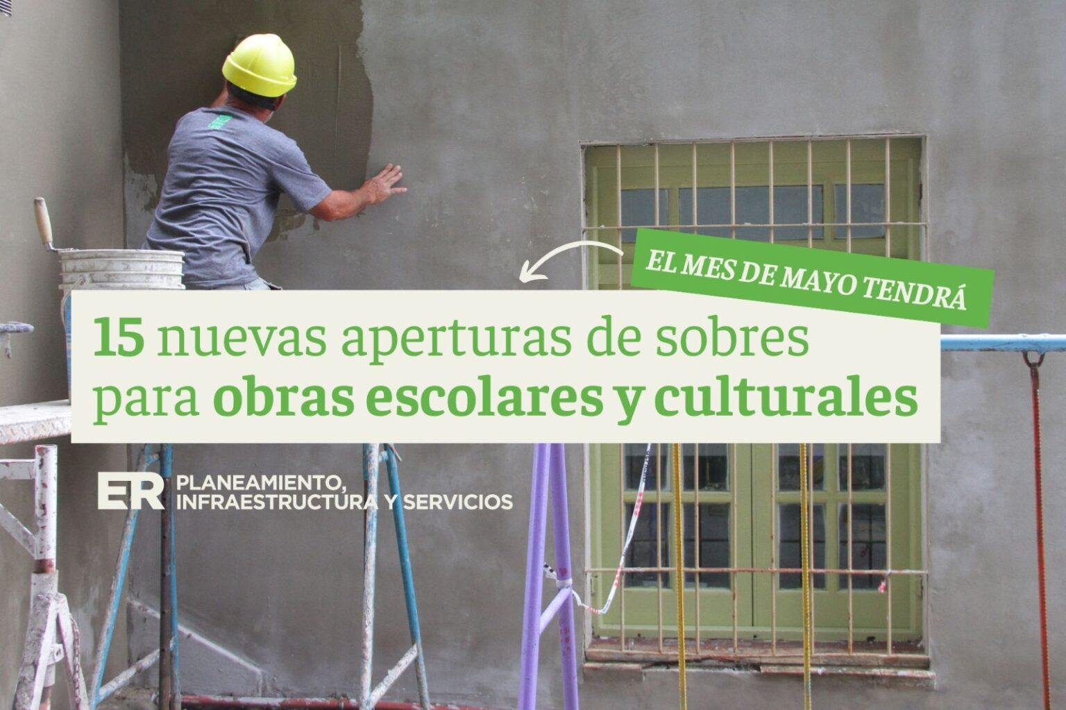 El Gobierno de Entre Ríos, a través del Ministerio de Planeamiento, Infraestructura y Servicios, informó que durante el mes de mayo se realizarán 15 aperturas de sobres para la ejecución de obras en instituciones educativas y en un museo provincial. La inversión oficial asciende a 415.052.638 pesos y beneficiará a 5.300 estudiantes.