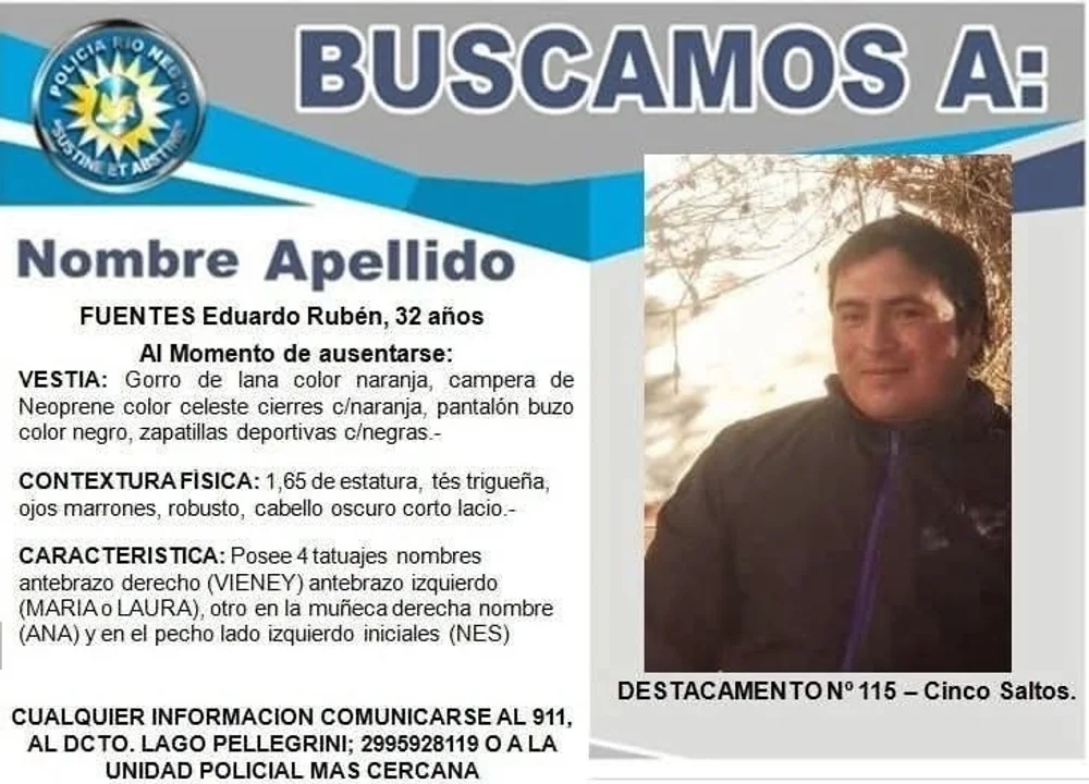 A su vez, Fuentes medía 1,65, tenía ojos marrones, de contextura robusta y cabello negro corto lacio, a la vez que presentaba cuatro tatuajes.