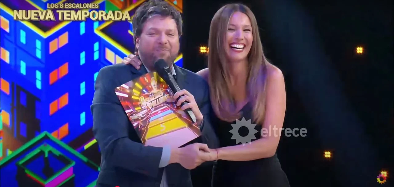 La reconocida modelo, Carolina “Pampita” Ardohain quedó al frente de la conducción de la nueva temporada de Los ocho escalones -Canal 13- y recibió el mando de la mano del ex presentador del ciclo Guido Kaczka, ante la sorpresa de los participantes.