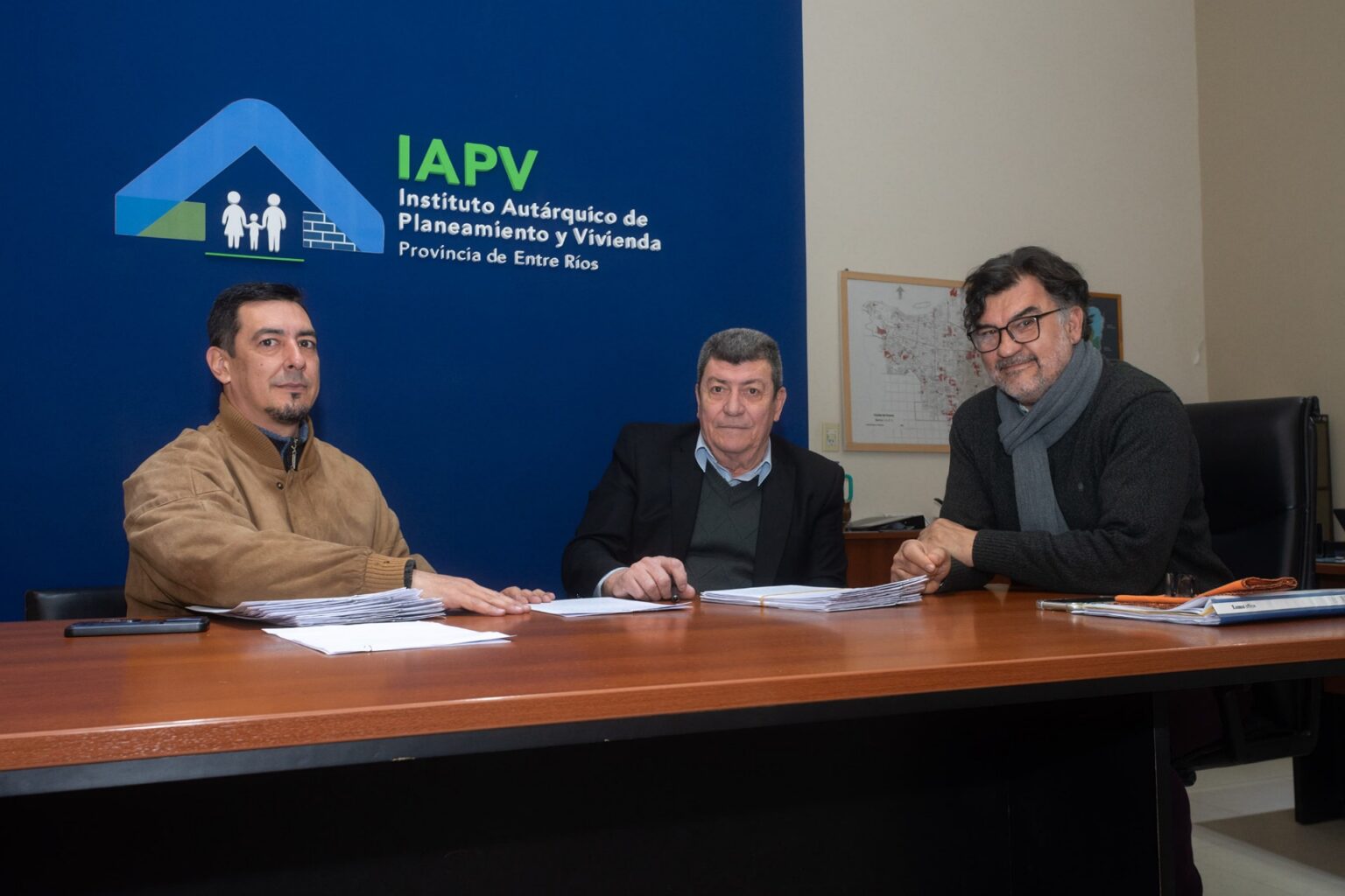 Las firmas se desarrollaron en la sede del IAPV, fueron encabezadas por el presidente del ente autárquico, Manuel Schönhals, quien estuvo acompañado por el escribano delegado de la escribanía Mayor de Gobierno, Sebastián Ibarra y el vicepresidente de la repartición, Luis Uriona.