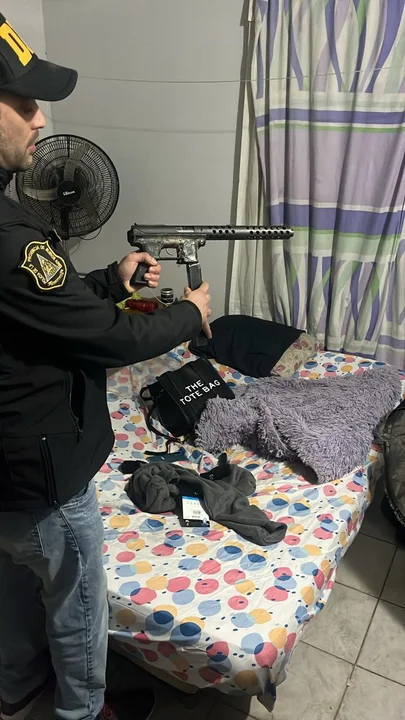 De manera inmediata se autorizó un allanamiento de urgencia en la calle República Siria 840, propiedad lindera, donde se secuestraron una ametralladora (similar PAM) 9 mm, con cargador y 10 cartuchos, cargadores circulares con 34 cartuchos, cargadores de la ametralladora, prendas de vestir del buscado, estupefacientes y elementos vinculantes.