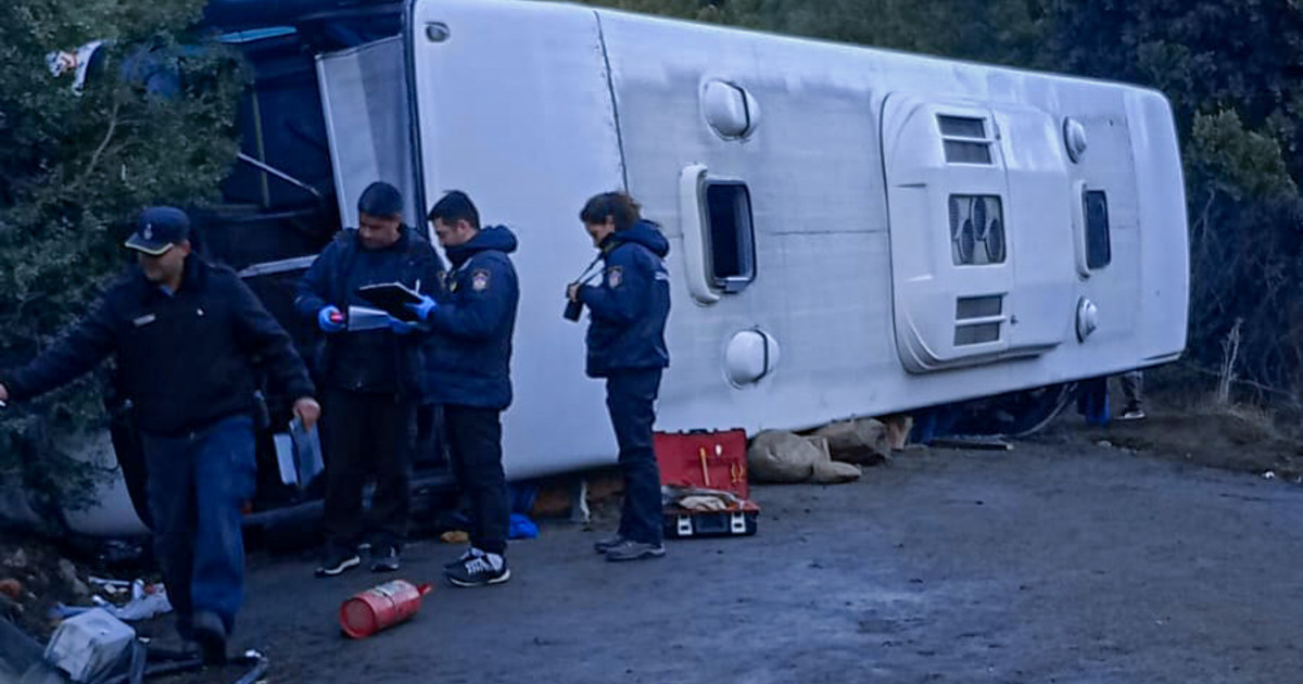 Cuatro personas permanecen internadas con heridas de gravedad tras el vuelco del colectivo en el que viajaban 44 personas por la Ruta 65, cerca de Villa Traful
